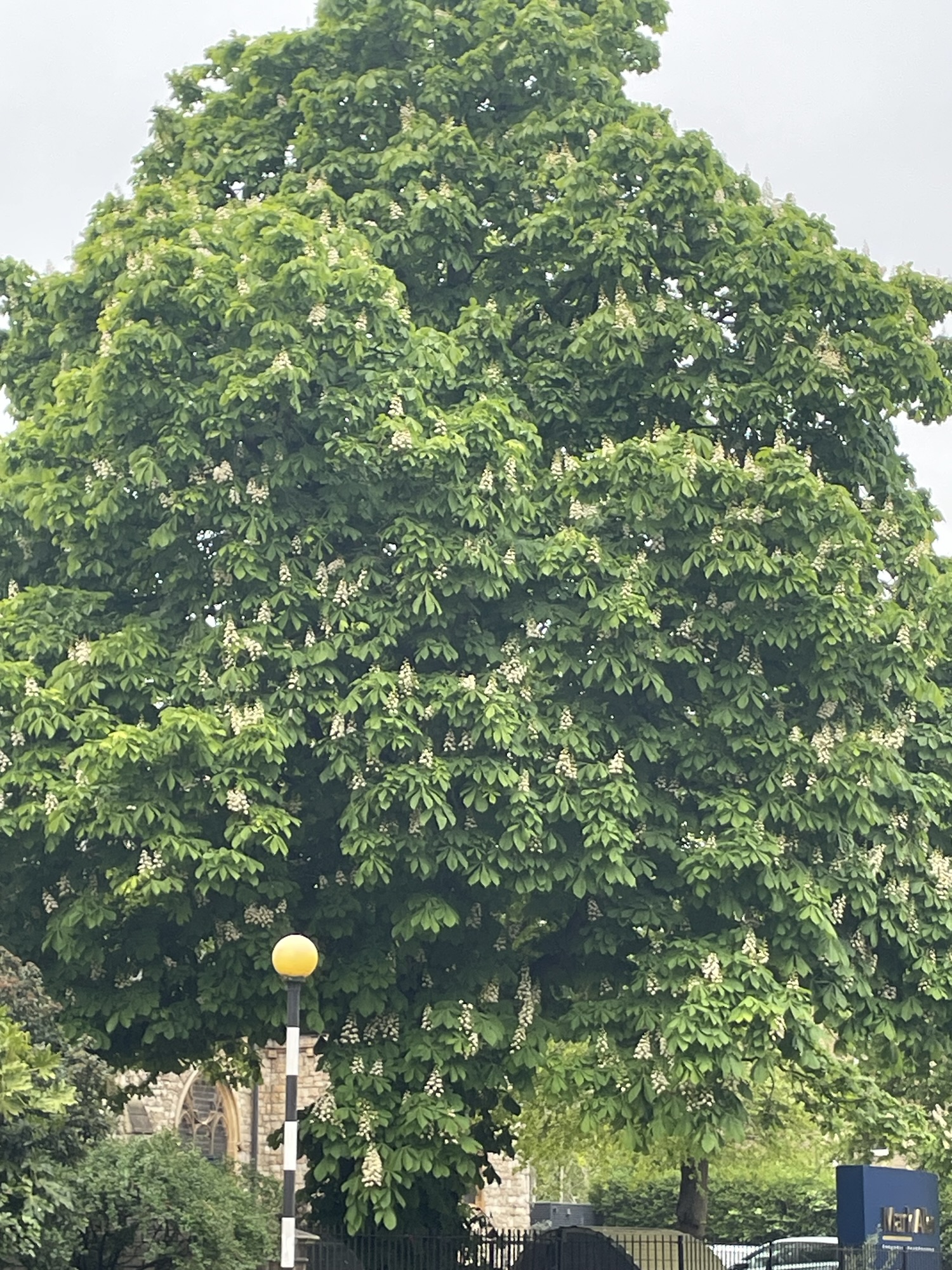 As I lean into the idea of including more yellow-orange brickwork, I’m going to do the same for greenery, and I’d like to embrace the vast horse chestnuts standing in front of St Jude’s Church, because I fear their days could be numbered. They are in glorious, healthy bloom right now, but like so many of these trees that dominate the British landscape, their leaves now brown too early towards the end of summer due to disease or infestation. Only one remains of four that stood in front of Brockwell Lido – although the loss may not have been due to disease.